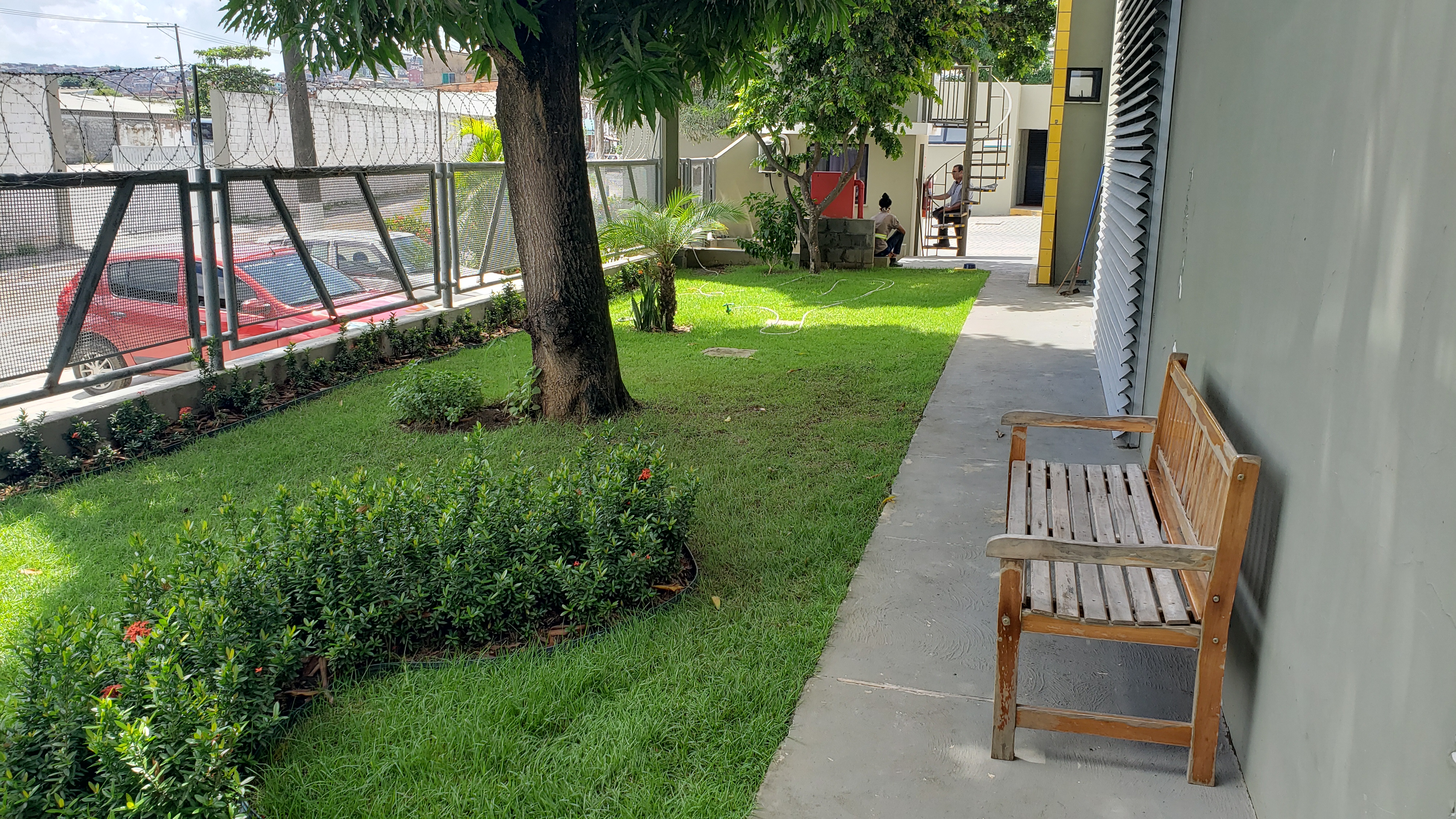 - Construção de escada metálica com estrutura externa em concreto armado e alvenaria;